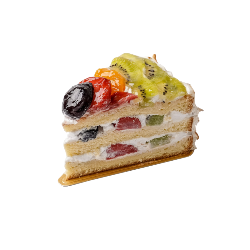Cake dengan Topping dan Filling Buah Segar, Dilapis dengan Light Cream dan Burnt Meringue